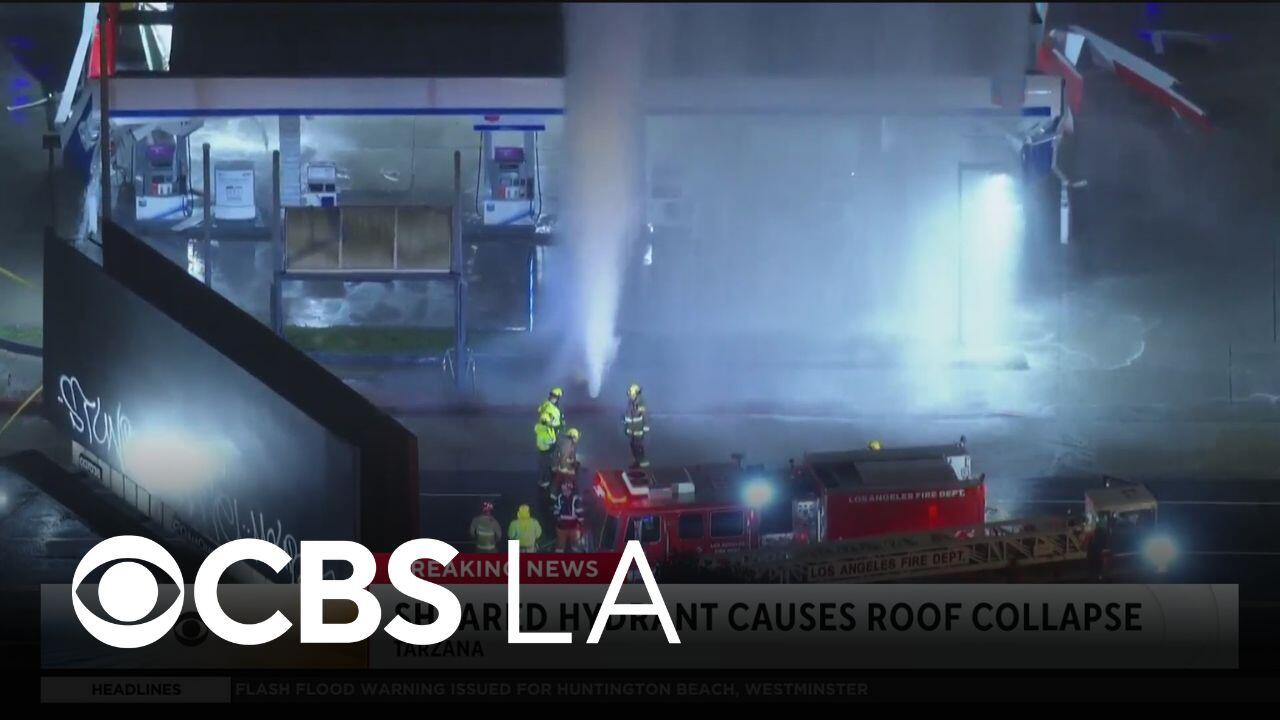 Geyser from sheared hydrant causes roof collapse in Tarzana