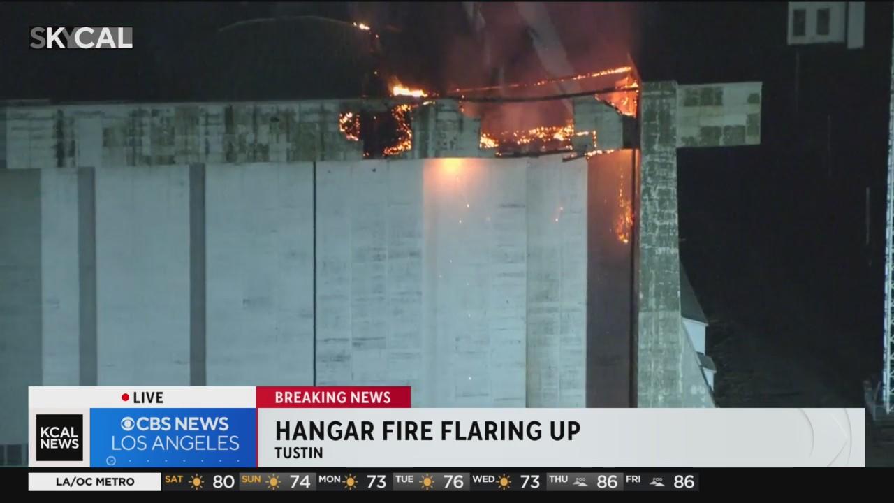 A hangar fire in Tustin has reignited, causing concern among residents and authorities alike Saturday and leading to school closures ordered for Monday.