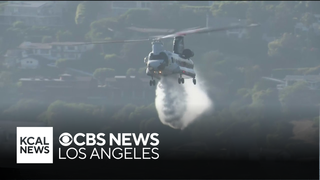 Helicopters drop water to extinguish the Rancho Fire