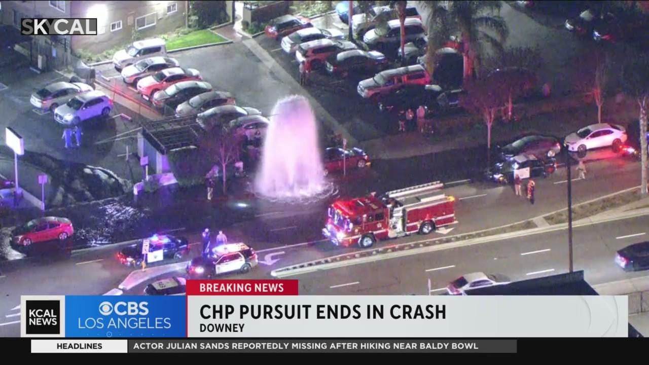 A high-speed pursuit near Downey came to an end after the driver crashed into a fire hydrant.