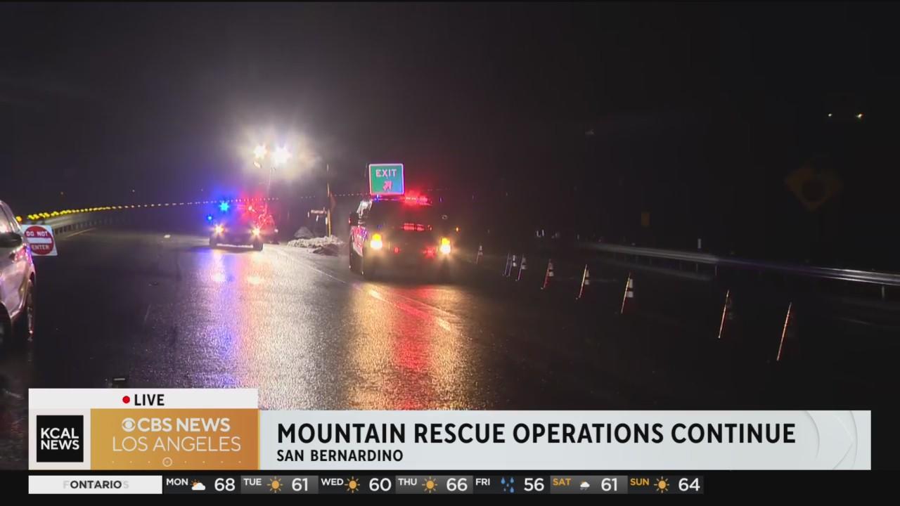 Access to San Bernardino Mountain communities was limited to emergency vehicles only Monday morning. Side roads in neighborhoods were still blocked by snow. Rick Montanez reports.