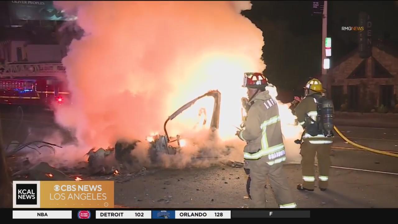 Hollywood crash, car fire kills 1, hospitalizes 2