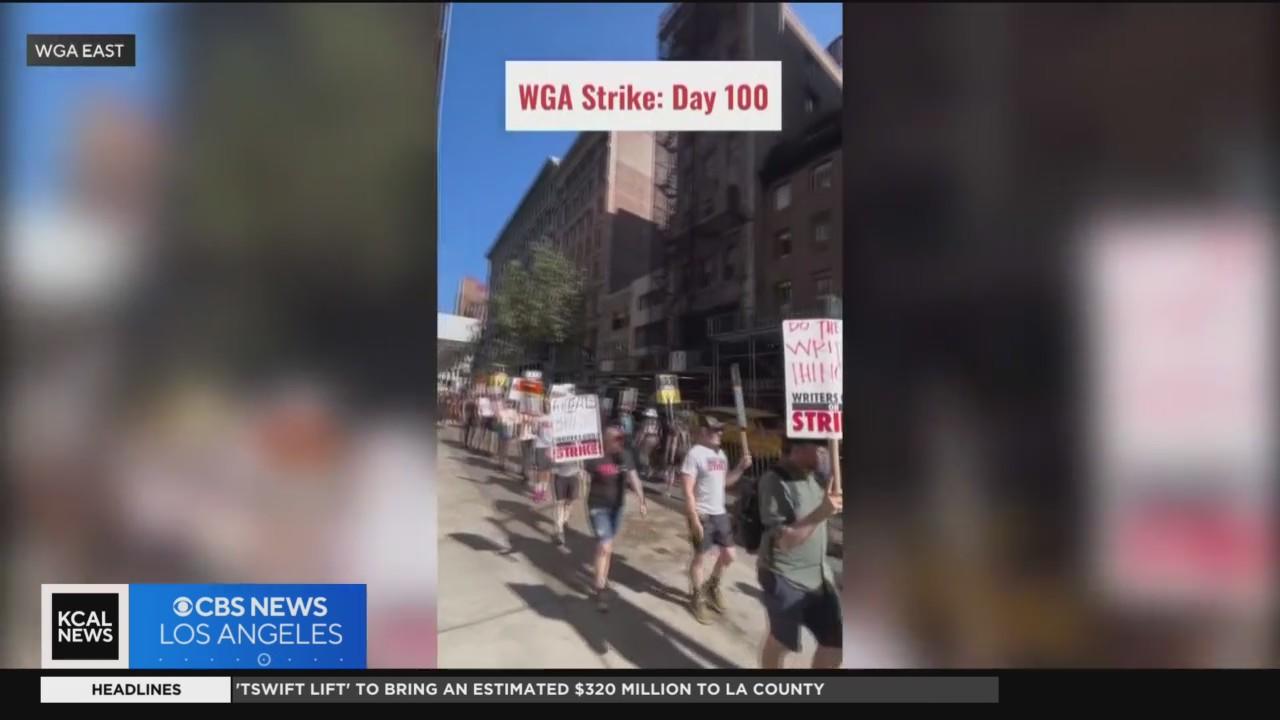 The Hollywood writers strike has reached 100 days and will most likely surpass the length of the 2007-2008 strike. Laurie Perez reports.
