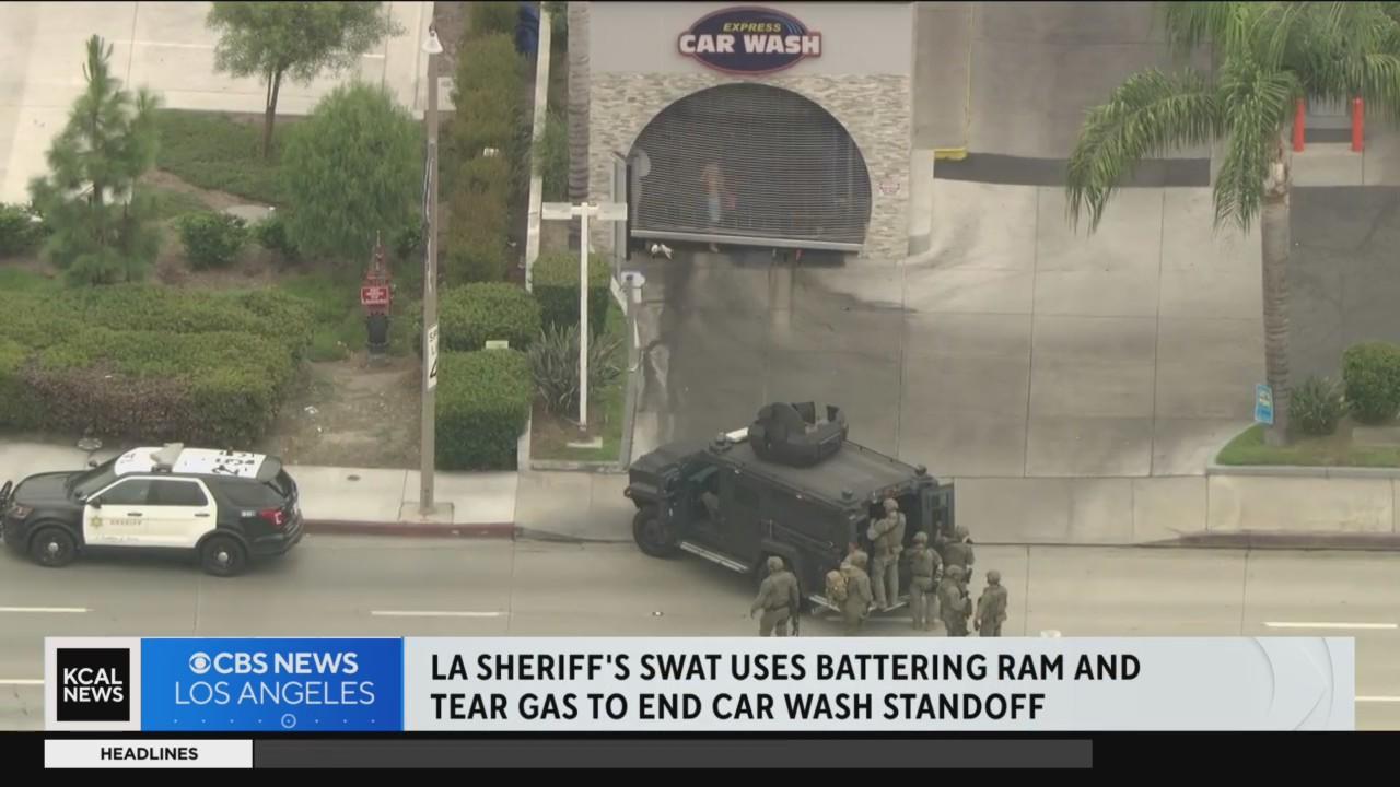 Hours-long standoff at City of Industry car wash ends with SWAT using battering ram, tear gas