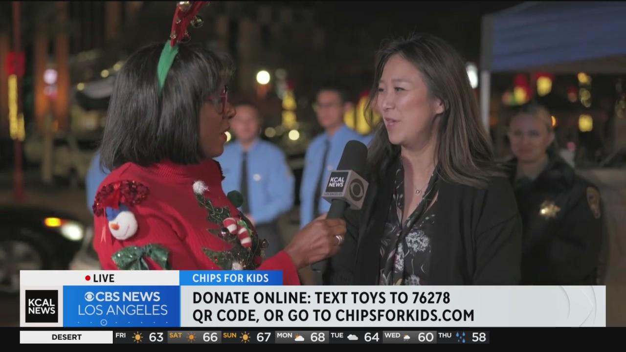 As the spirit of giving continues, Pat Harvey speaks with Angel, the owner of a local insurance company who stopped by to drop off a truckload of toys at the CHiPs for Kids Toy Drive.