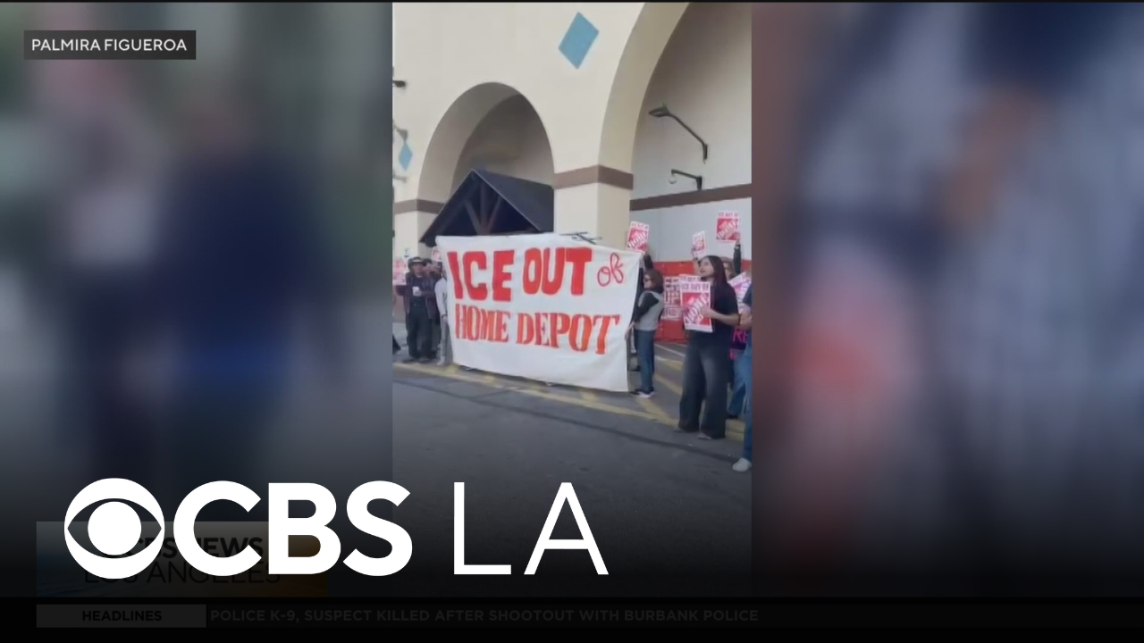 Laurie Perez reports from Monrovia, where protesters gathered outside of a Home Depot store on Sunday for a unique and symbolic demonstration urging Home Depot to take action as immigration enforcement operations continue across Los Angeles County.