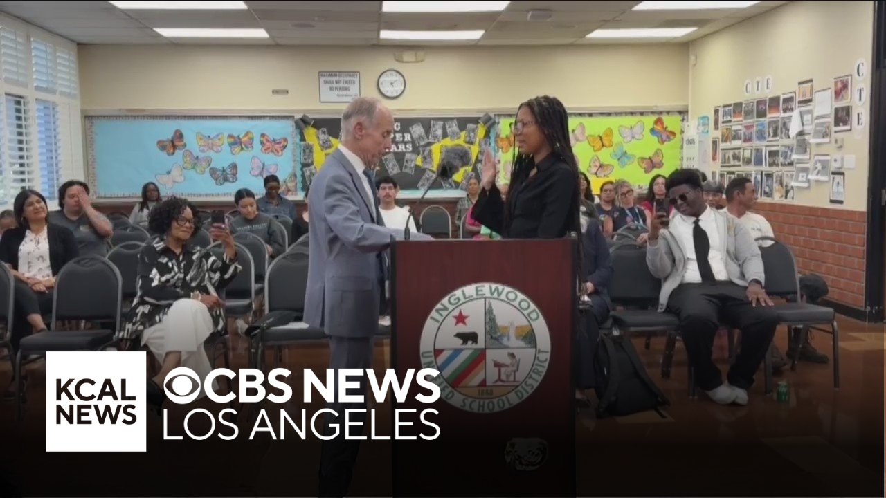 Senior Amaya Hazard made history as Inglewood's first student sworn in as district board member. Luzdelia Caballero reports.