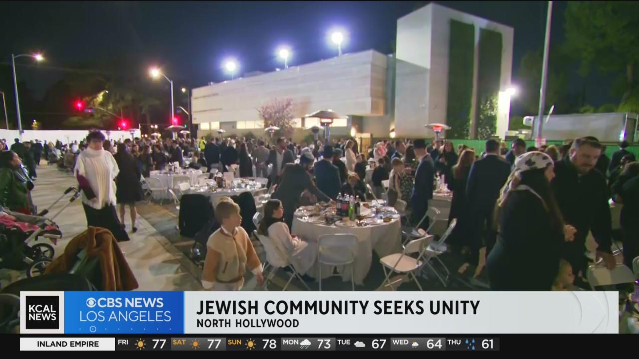 As the war in the Middle East continues with no end in sight, the Jewish community in North Hollywood held a large Shabbat dinner to show their solidarity and hope for an end to the ongoing fighting. Tom Wait reports.