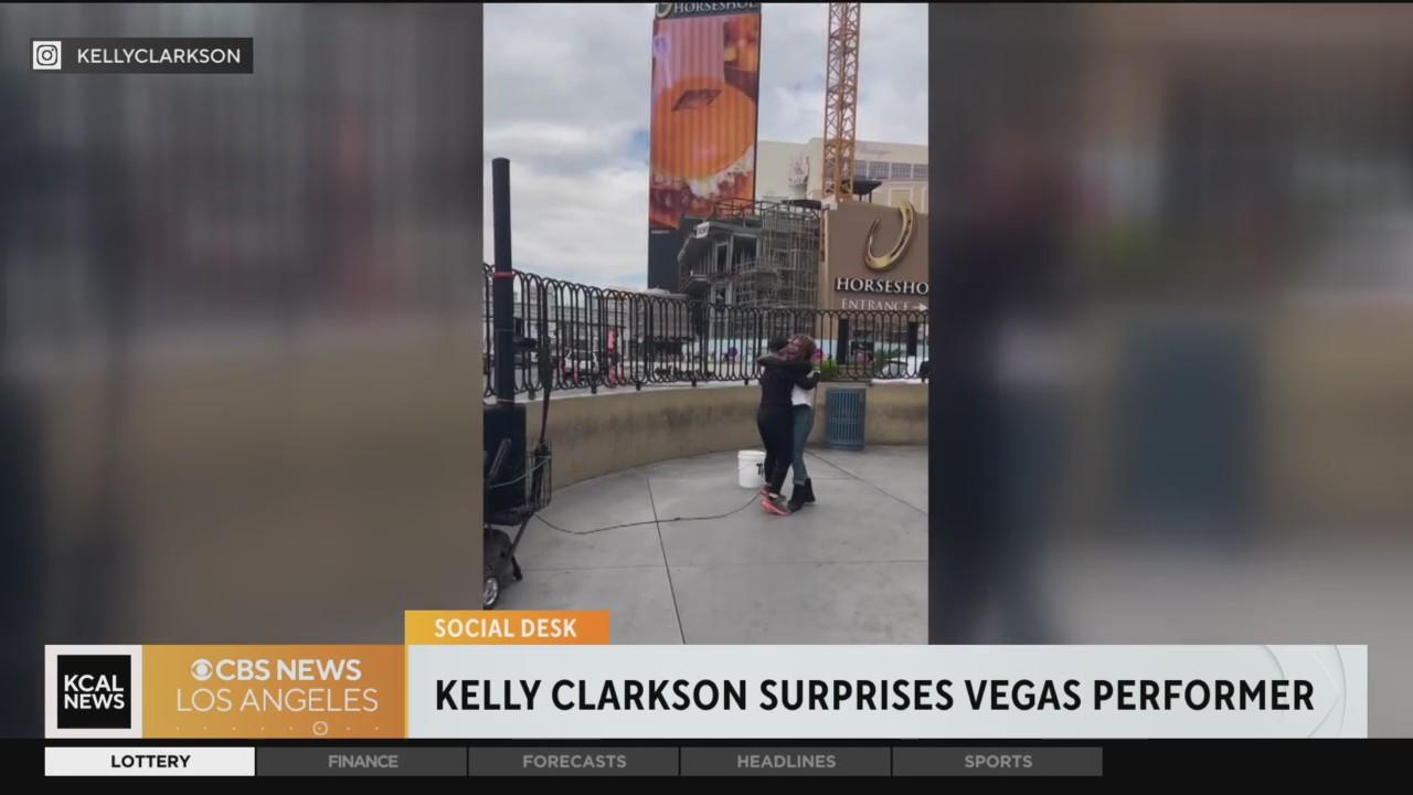 Kelly Clarkson surprises a Vegas street performer