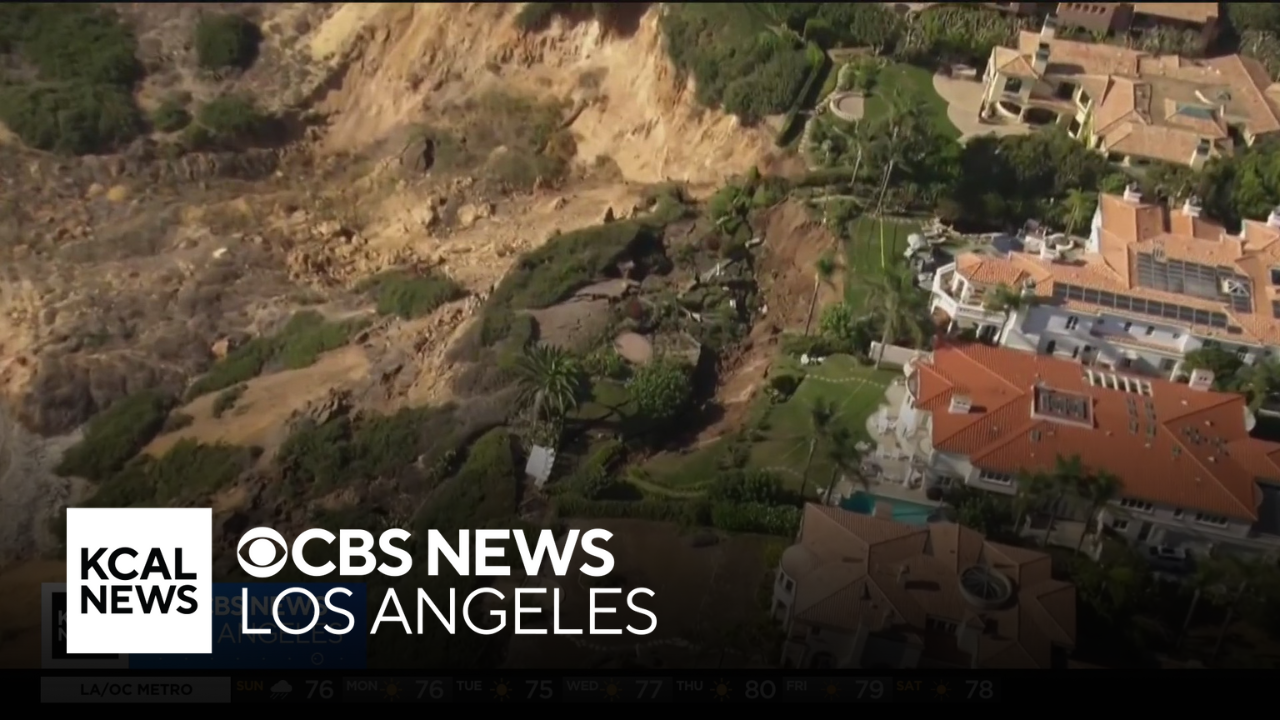 Lauren Pozen reports from Rancho Palos Verdes, where the land behind several homes gave way late Saturday night, dropping about 50 to 60 feet towards the coastline below.