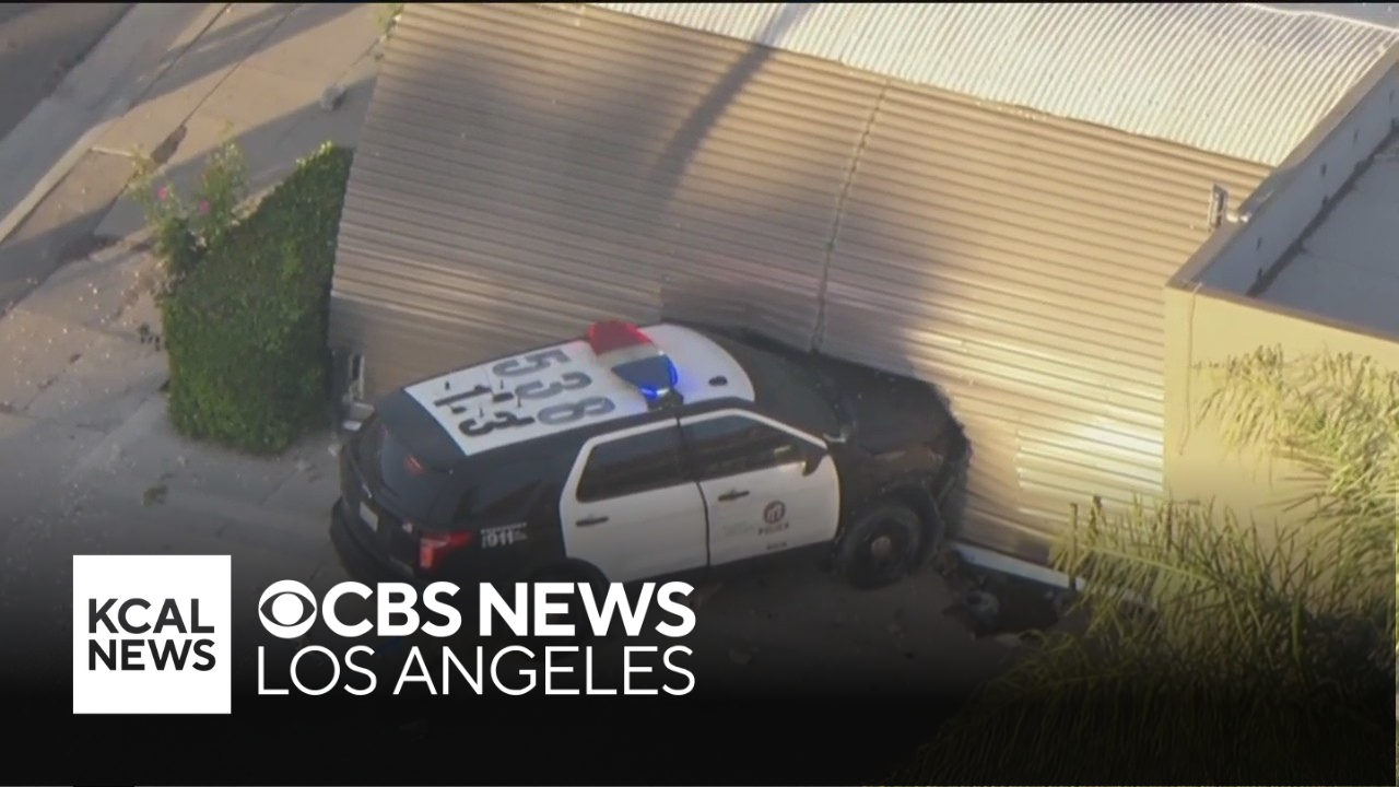 During the chase, an LAPD officer veered off the road and crashed into a building near the intersection of Hill Avenue and Walnut Street.