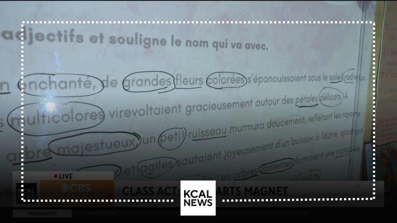 KCAL News reporter Jasmine Viel is at a middle school in Altadena talking with students and teachers about a French immersion class they offer at the school.