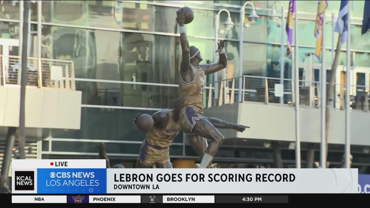 Jake Reiner reports from Downtown LA, where Lakers fans were as excited as they've been in the last few seasons with LeBron James on the cusp of becoming the NBA's all-time leading scorer, a longstanding record set by former Laker Kareem Abdul-Jabbar.