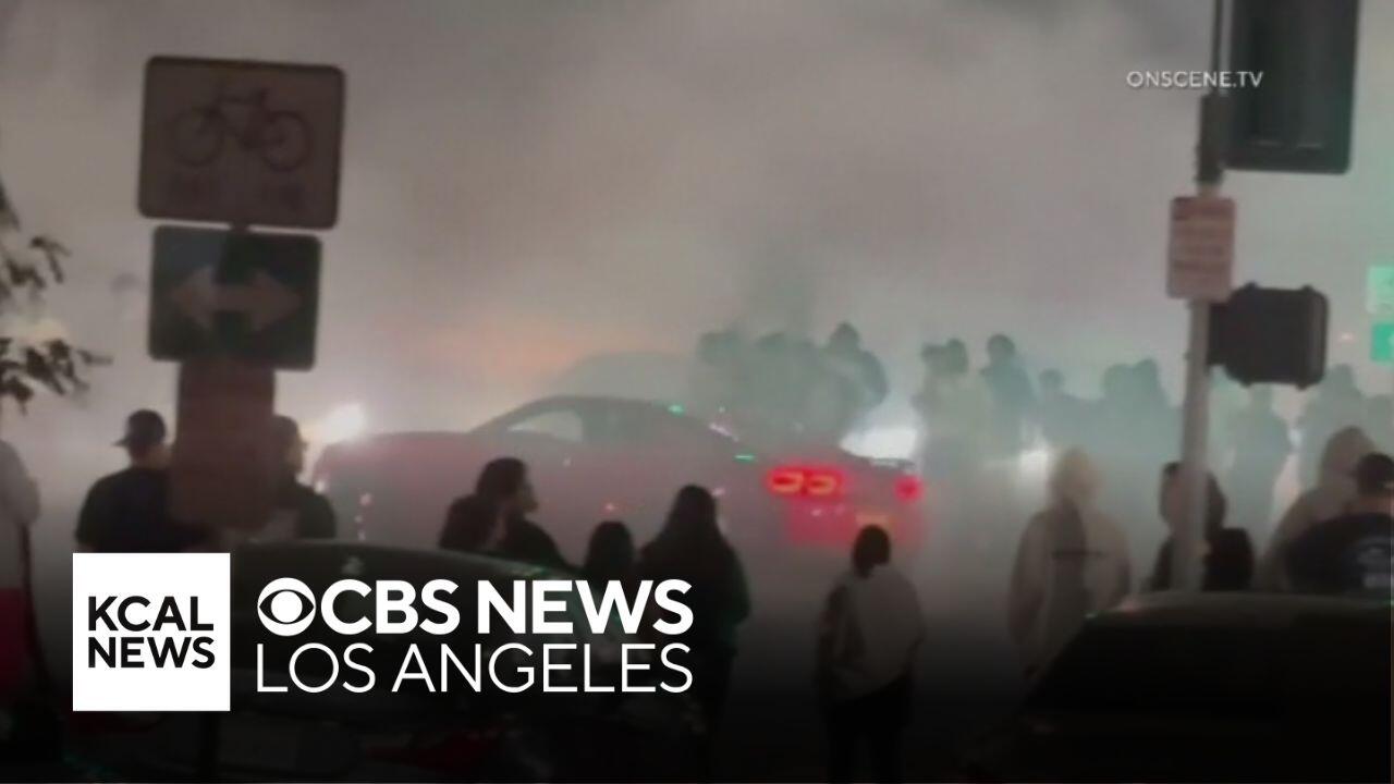 A Long Beach business was looted and vandalized during a street takeover. Nearby residents say crowds gather almost every weekend blocking intersections.