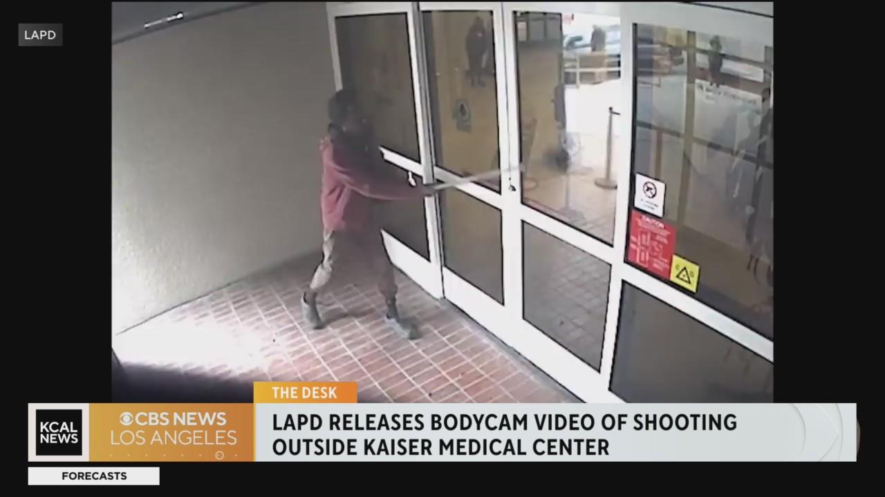 LAPD bodycam video shows the less-than-lethal force method used to detain a man trying to smash open a medical center glass door