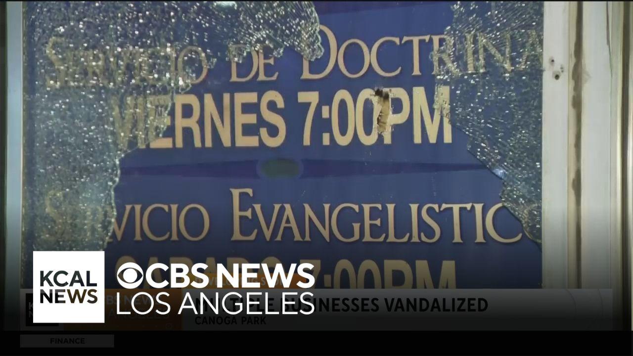 A man wielding a baseball bat smashed out the glass storefronts of several businesses and a small church in Canoga Park -- stealing nothing from any of the places he vandalized, according to police.