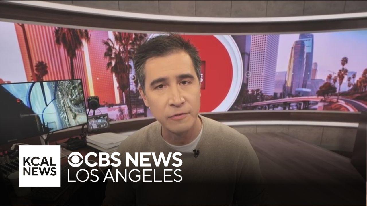 KCAL Assignment Desk Editor Mark Liu chokes up on air after his friends find out they lost their home in the Eaton Fire.