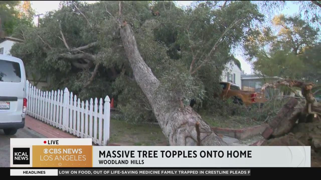 Massive tree topples onto Woodland Hills house
