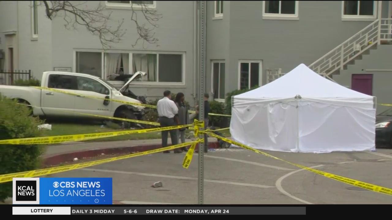 A mother was killed and her 6-year-old daughter was critically injured when a truck struck them in a crosswalk and crashed outside an elementary school in the Mid-Wilshire area Tuesday morning. Rick Montanez reports.