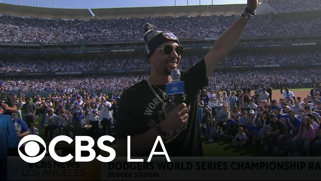 Mookie Betts says he wants to fill up an entire hand worth of World Series rings at the Dodgers World Series Championship Rally.