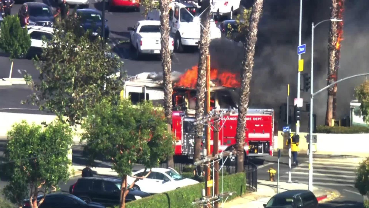 Motor home catches fire in Panorama City
