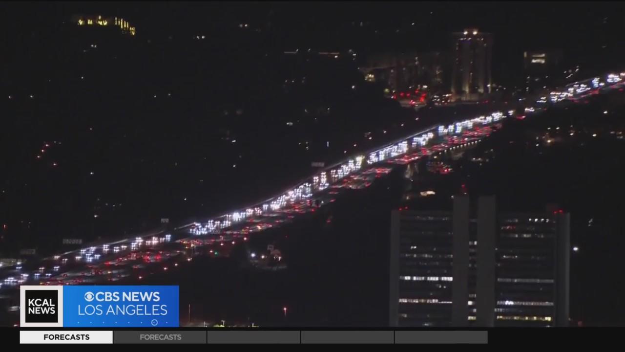 Thanksgiving traffic blocked Southern California freeways as many try to make it in time for their feasts. Laurie Perez reports.