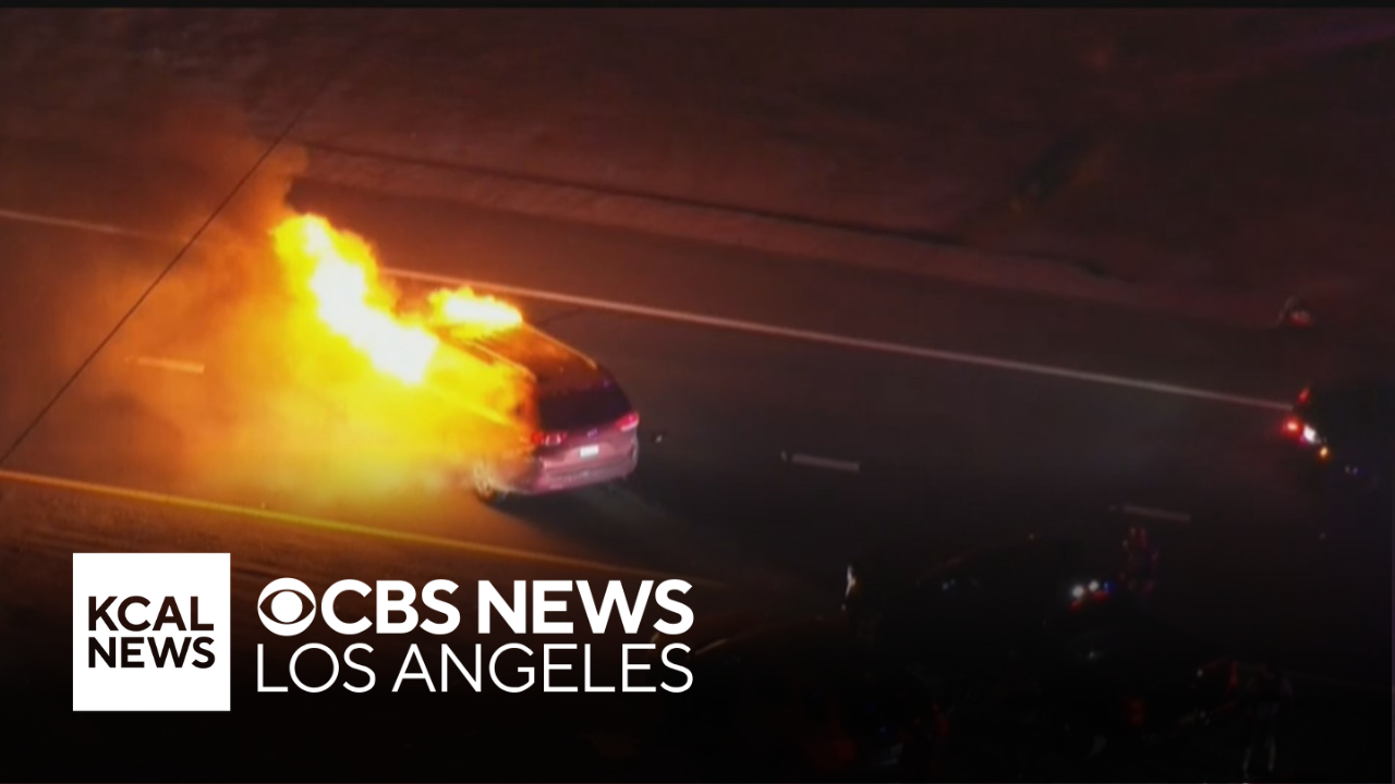 Narcotics suspect ditches smoldering minivan during police pursuit