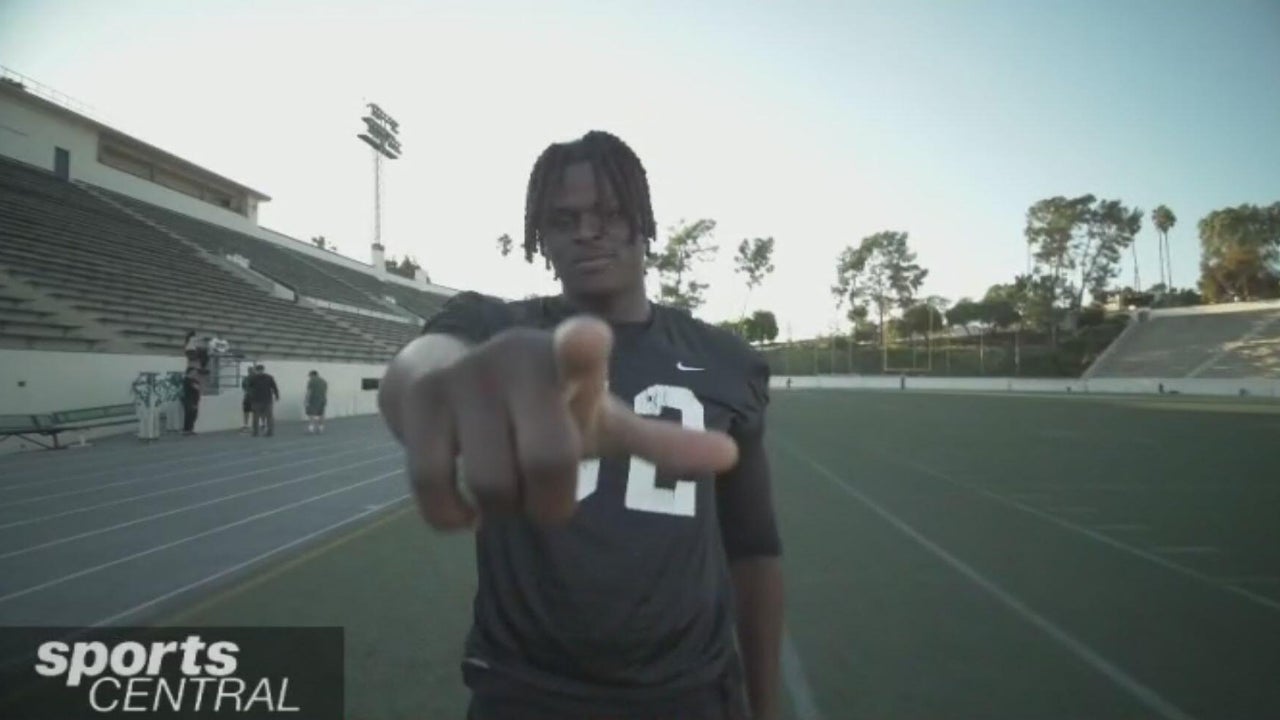 East L.A. College has a history of turning basketball players into high-level football players, and the latest might be the best of the bunch. David Chukwuemeka had never played football before this season, but now he's one of the top junior college prospects in the country, with offers rolling in from D-1 schools. Jill Painter Lopez sat down with the budding star, who was born in Nigeria and is still learning the game of football.