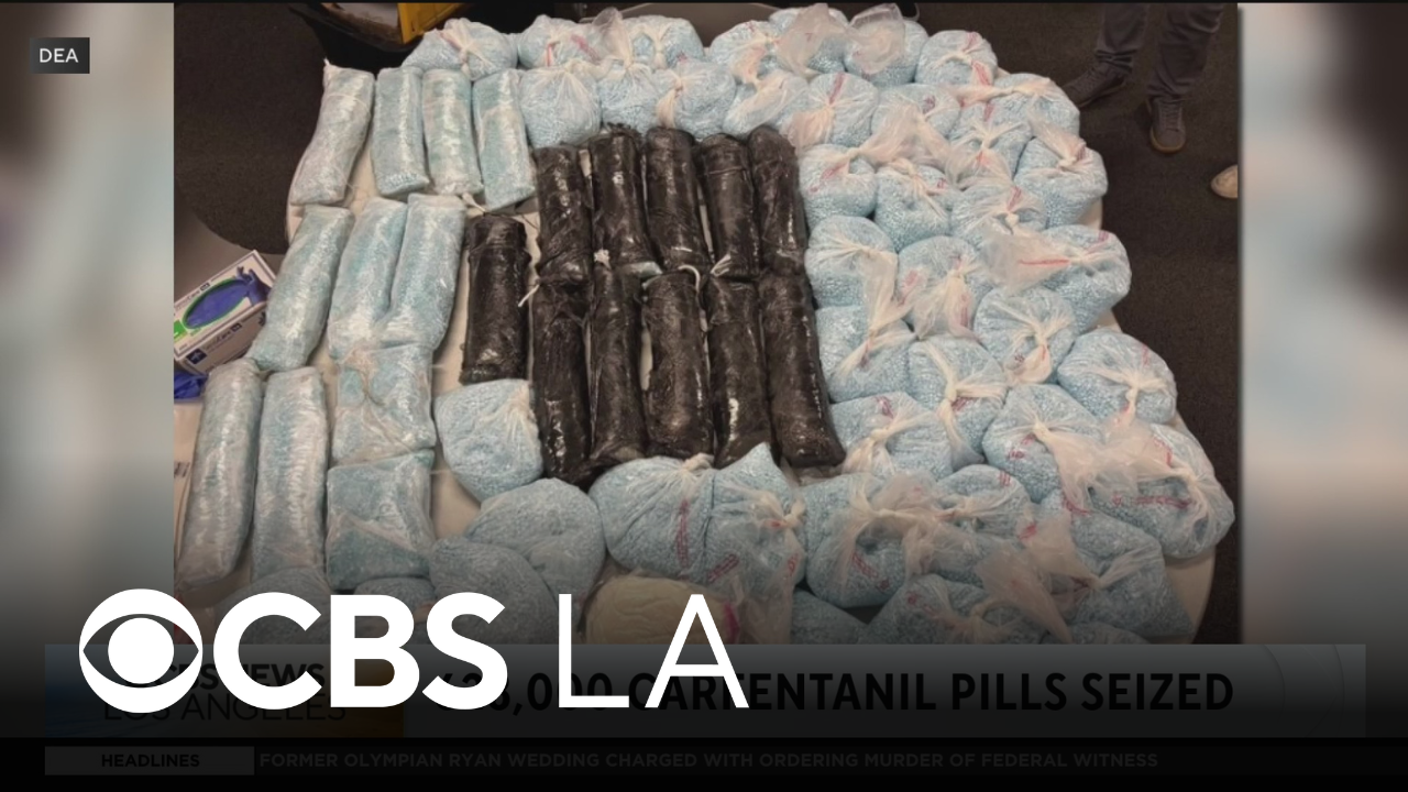 More than 600,000 pills containing a powerful synthetic opioid used to tranquilize large animals like elephants were seized during a Drug Enforcement Administration operation in Los Angeles County in October.
