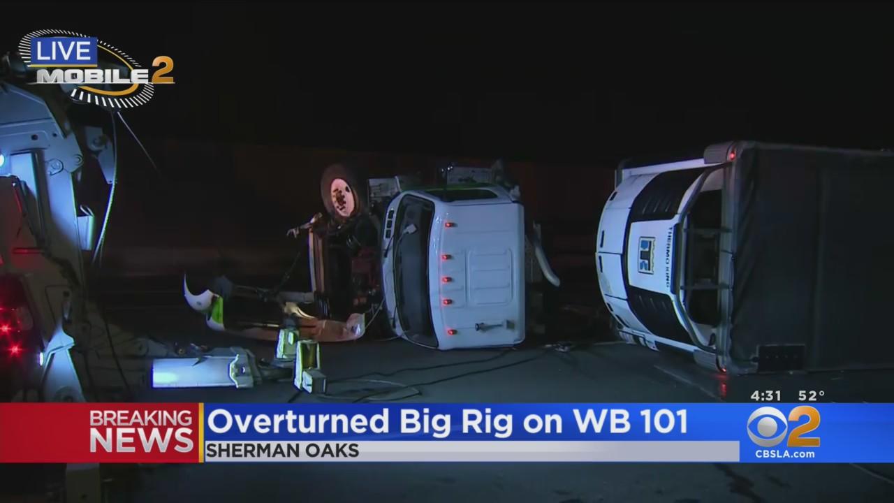 Overturned big-rig spills milk, fuel on 101 freeway in Sherman Oaks