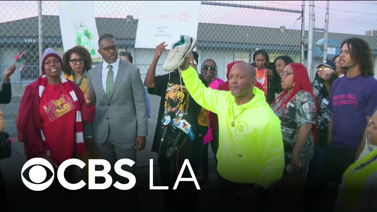 Protesters gathered outside of an Inglewood daycare facility on Friday to express their outrage over a disturbing video that shows a teacher throwing her shoe at a 5-year-old student with autism in January. Mike Rogers reports.
