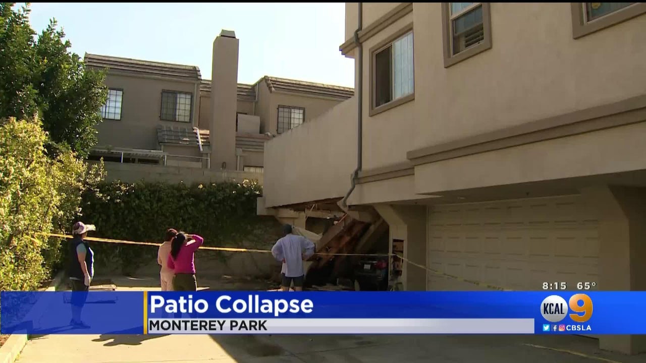 A scary moment for residents of an apartment building in Monterey Park when the building's patio suddenly collapsed onto a carport. Fortunately there were no injuries.