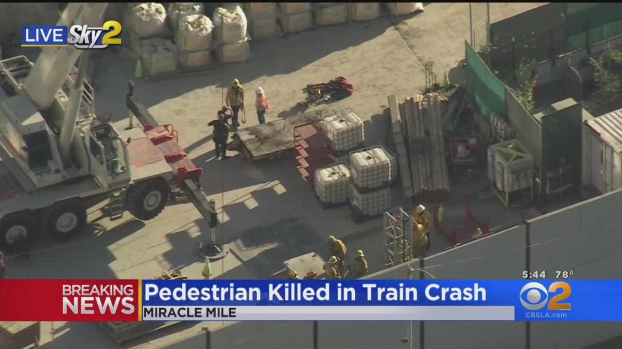 Sky2's Desmond Shaw was over the scene of what appears to be a construction accident. A person died after getting trapped beneath a service train used in the construction of the Metro Purple (D) Line at 711 S. La Brea Ave.