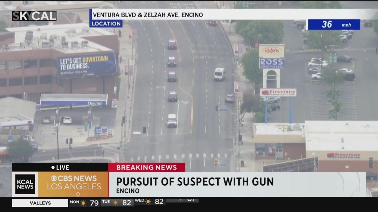 A suspect allegedly with a gun, led police on a pursuit at moderate speeds through Encino and into Woodland Hills.