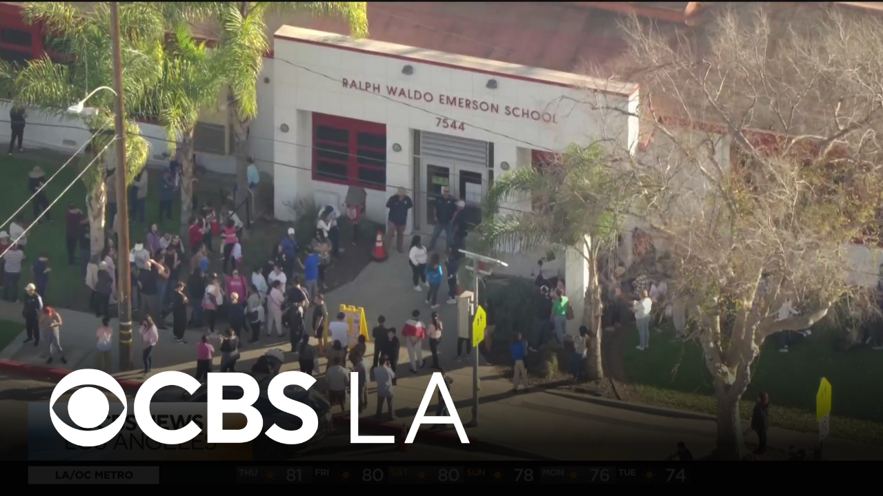 Ralph Waldo Emerson Elementary School in Rosemead was placed on lockdown on Wednesday afternoon after possible explosives were found at a vacant home nearby, according to Los Angeles County Sheriff's Department deputies. Mike Rogers reports.