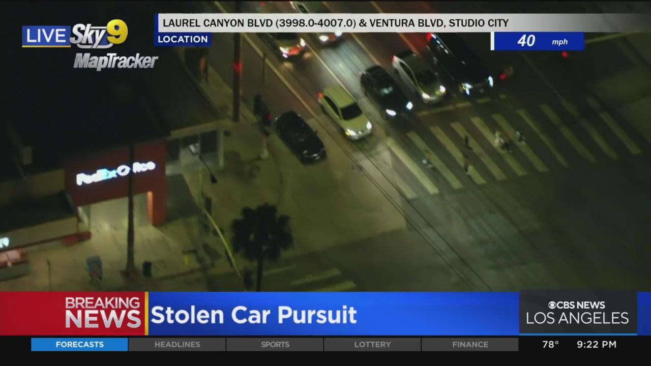 After the pursuit began in the Van Nuys area, the suspect has now made his way into Studio City and came dangerously close to hitting pedestrians who were crossing the street on Laurel Canyon Boulevard.