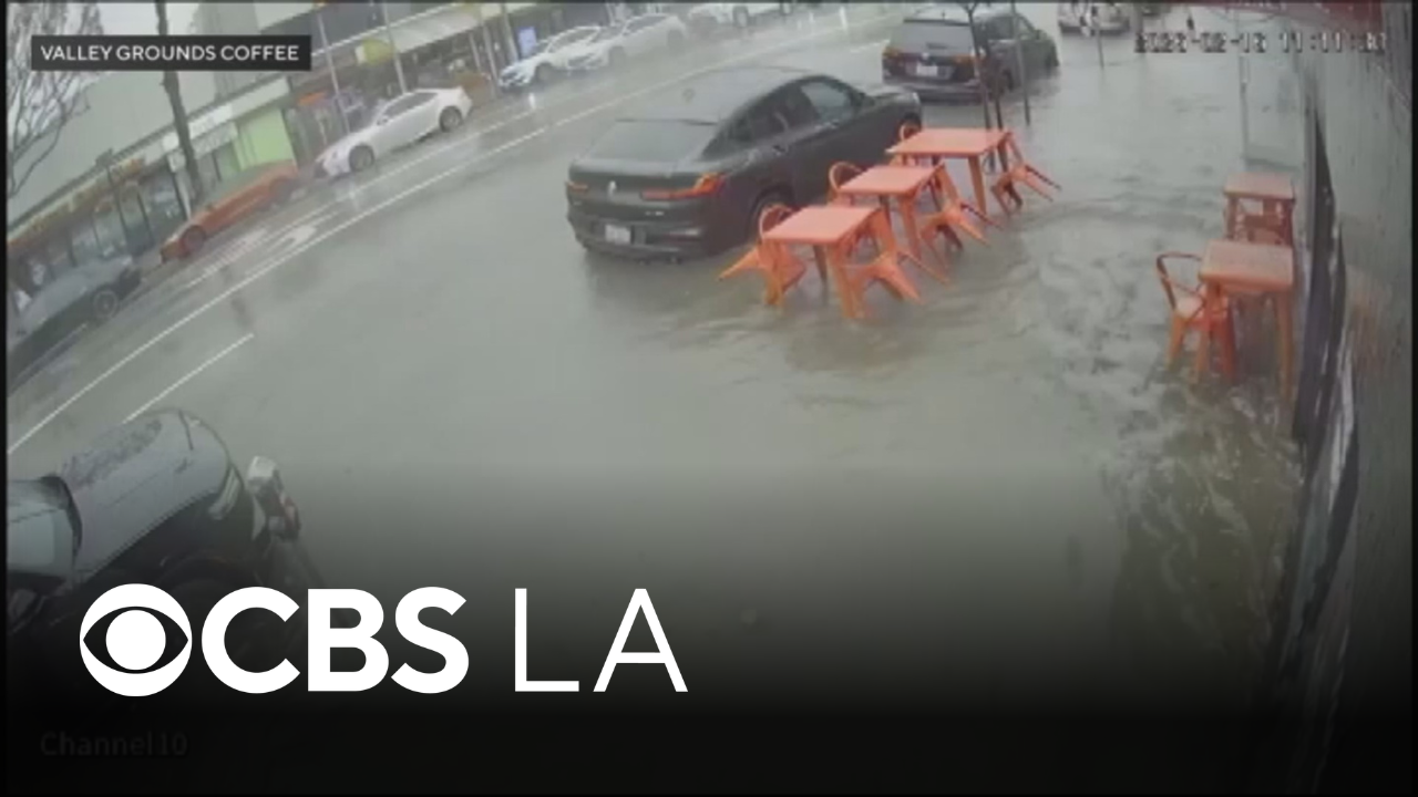 Rain floods Sherman Oaks coffee shop