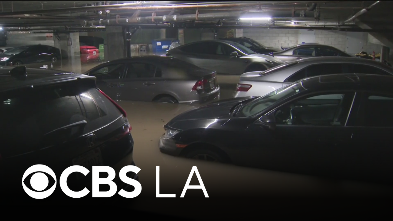 Rain storm floods underground garage in Los Angeles