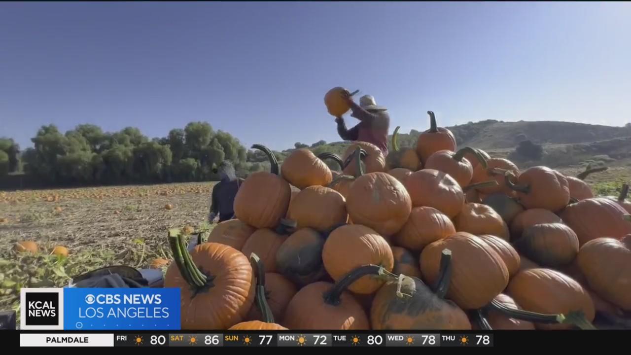 With Halloween around the corner costumes and pumpkins are in high demand. Thankfully, the rainy weather earlier this year has helped farmers harvest massive amounts of pumpkins. Amanda Starrantino reports.