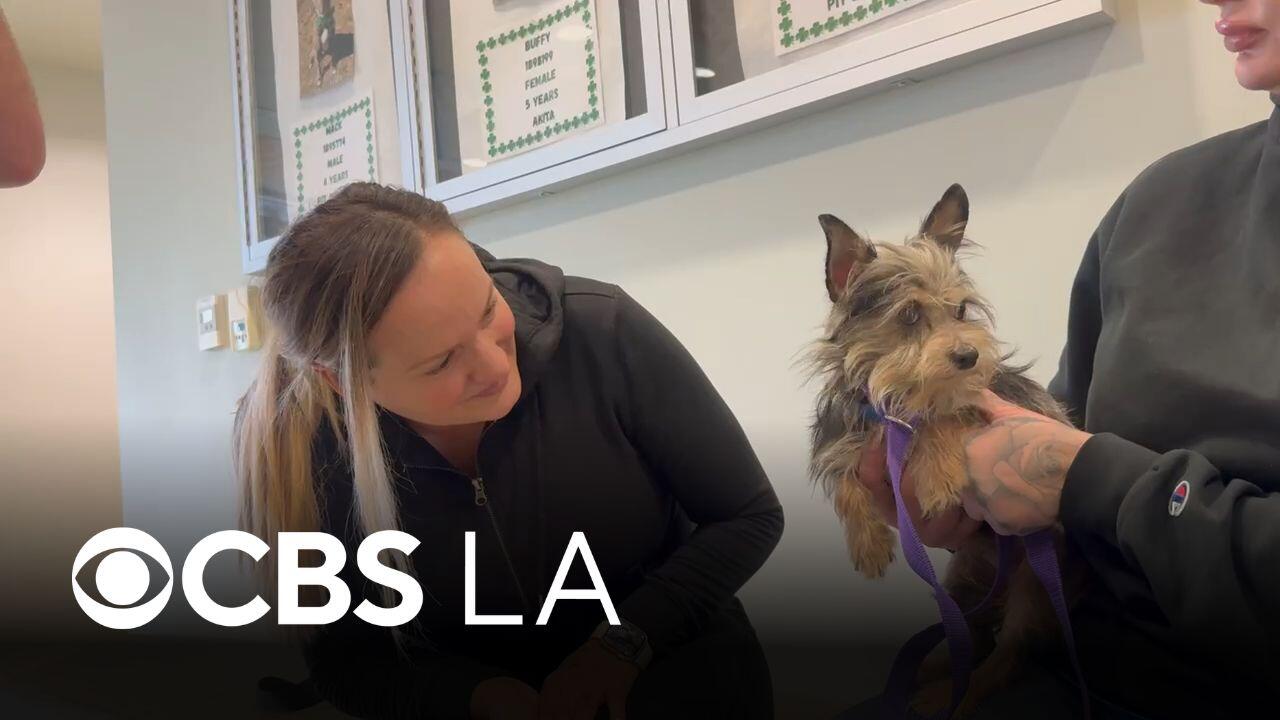 The Riverside County Department of Animal Services rescued more than 60 dogs from a house fire near eastern Hemet on Thursday. Nicole Comstock reports.