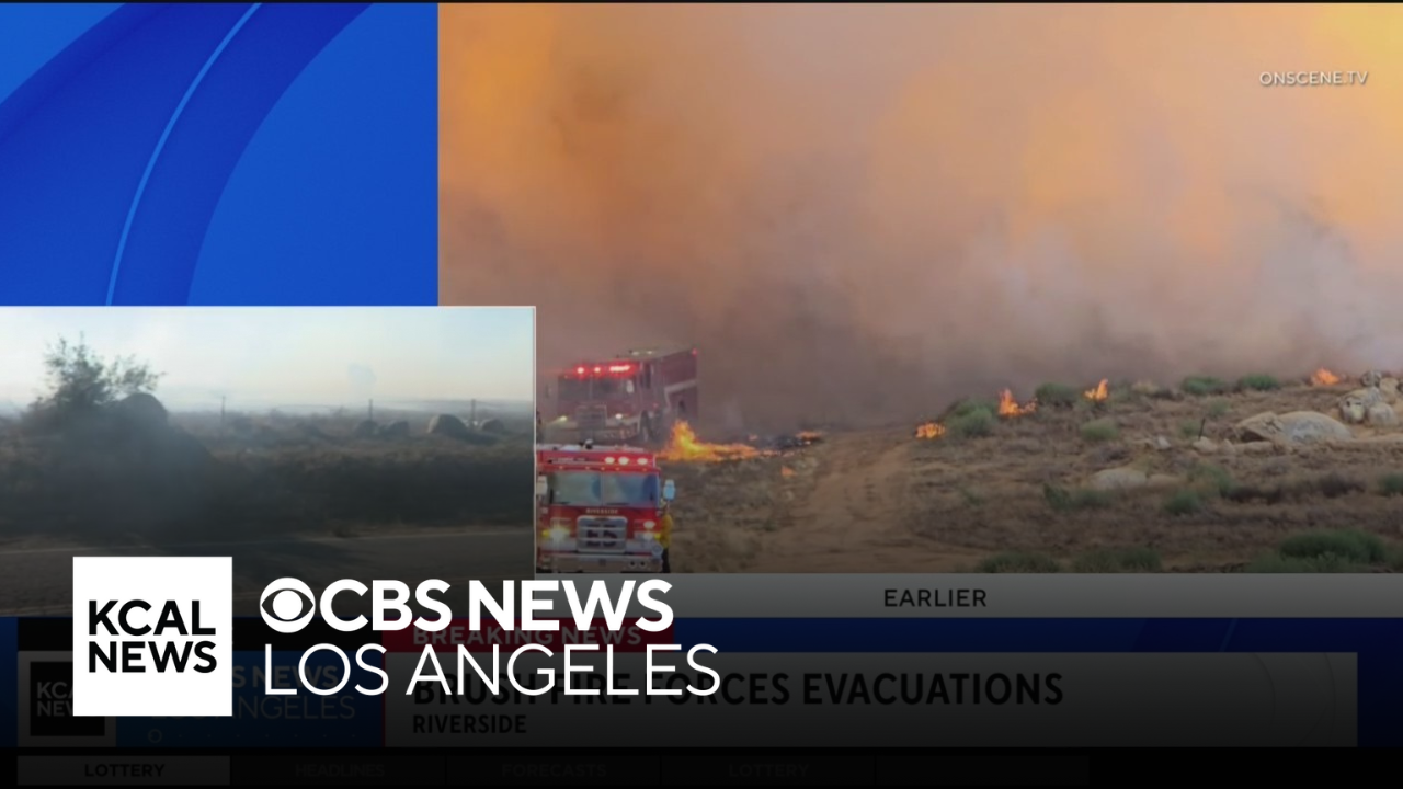 Laurie Perez reports from Riverside, where homes were evacuated on Sunday due to the 80+ acre Mandalay Fire.