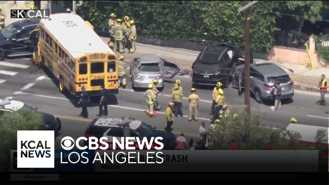 School bus driver injured in Arleta multi-vehicle crash