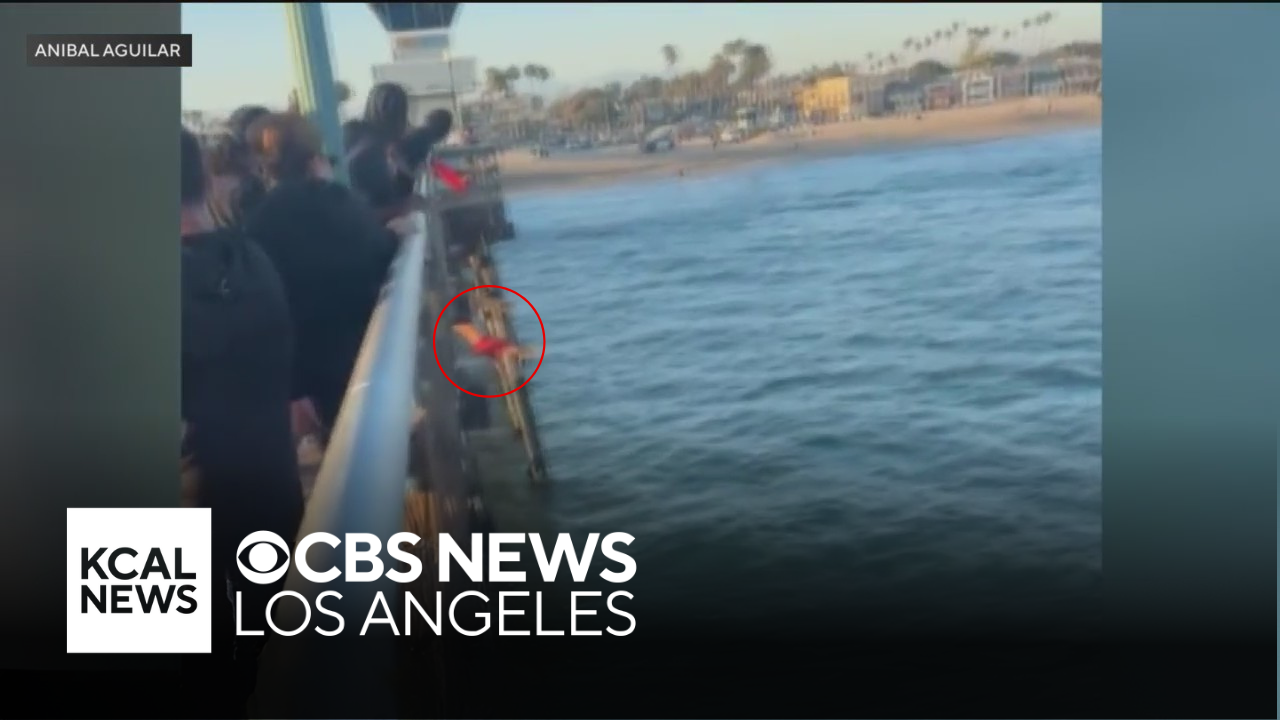 The lifeguard was trying to rescue someone who had fallen into the ocean when his buoy got tangled around a railing on the Seal Beach Pier. Laurie Perez reports.