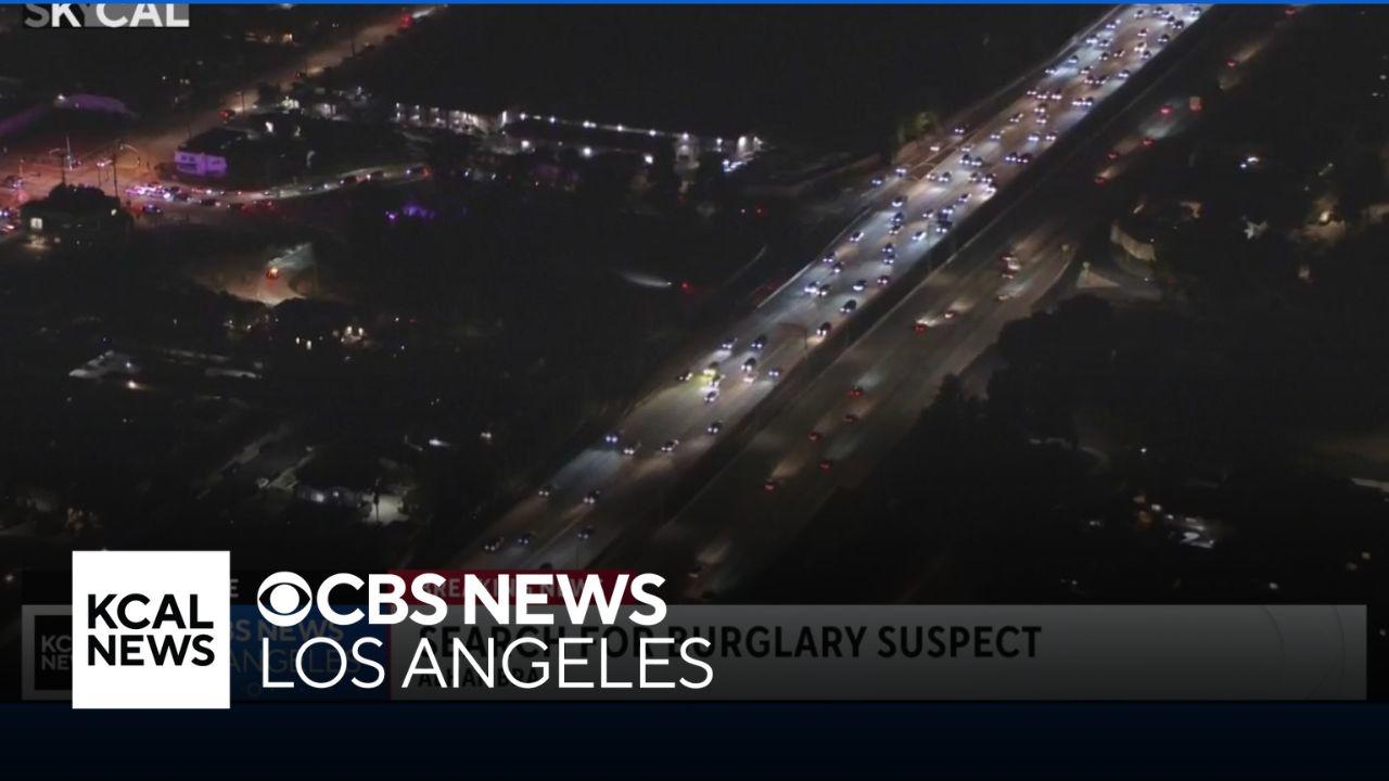 In Alhambra Wednesday night, investigators searched for a burglar off the 10 Freeway.