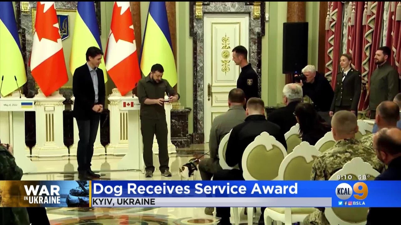 A service dog in Ukraine received a reward from president Volodymyr Zelenskyy on Sunday for its role in sniffing out mines left by Russian forces.