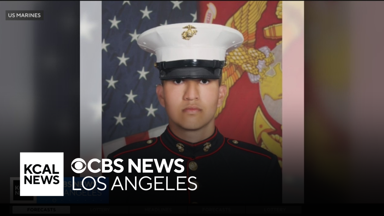 Nicole Comstock reports from Riverside County, where fallen U.S. Marine Lance Corporal Albert Aguilera was transported to a funeral home with a solemn 40-mile procession.