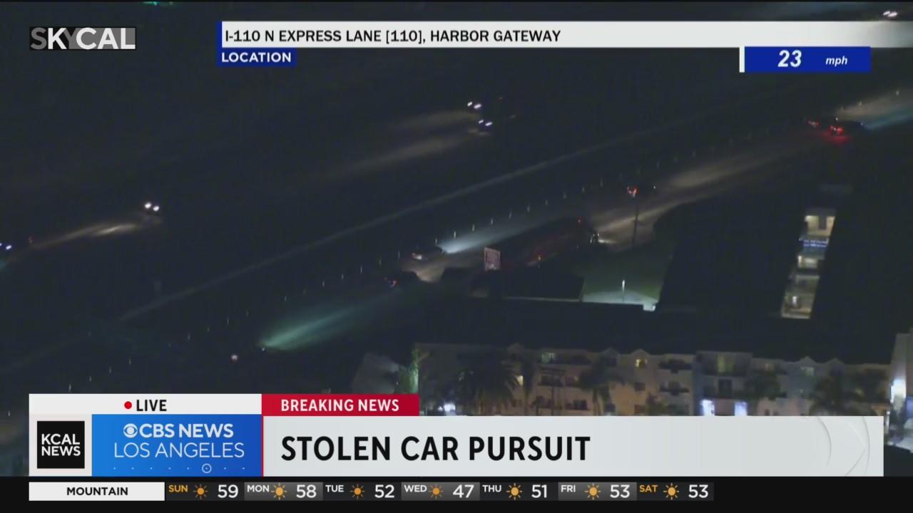 Authorities were in pursuit of a stolen vehicle on the 110 Freeway Sunday night.