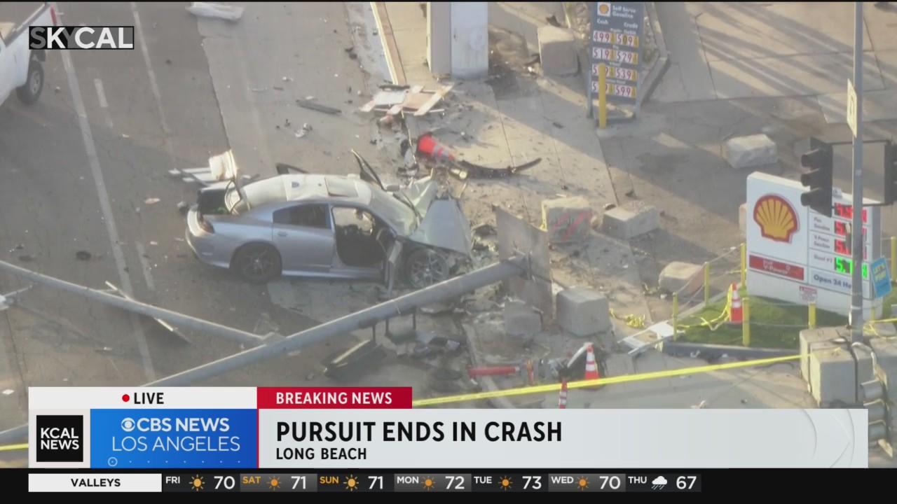 A brief pursuit ended after a stolen vehicle crashed into another car in Long Beach Friday afternoon.
