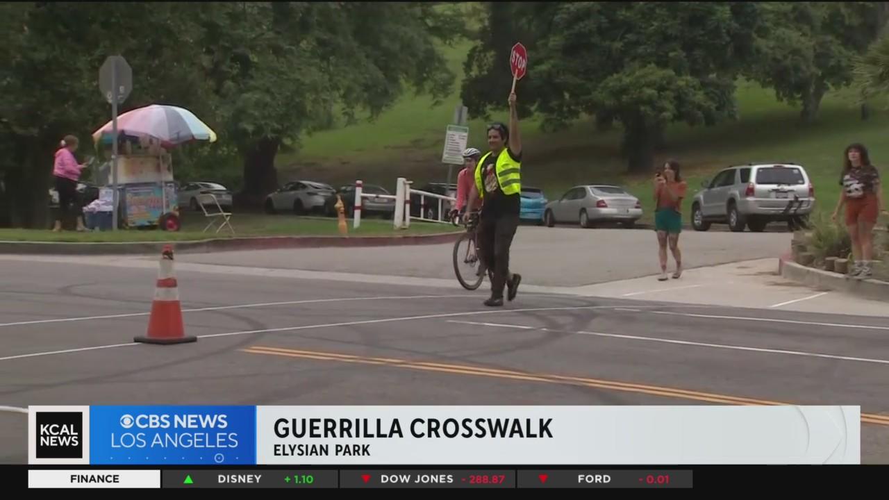 Citing an increase in pedestrian-related traffic deaths, advocates created a "guerilla crosswalk" in Elysian Park on Saturday to raise awareness for what they say are much-needed crossings in the area.