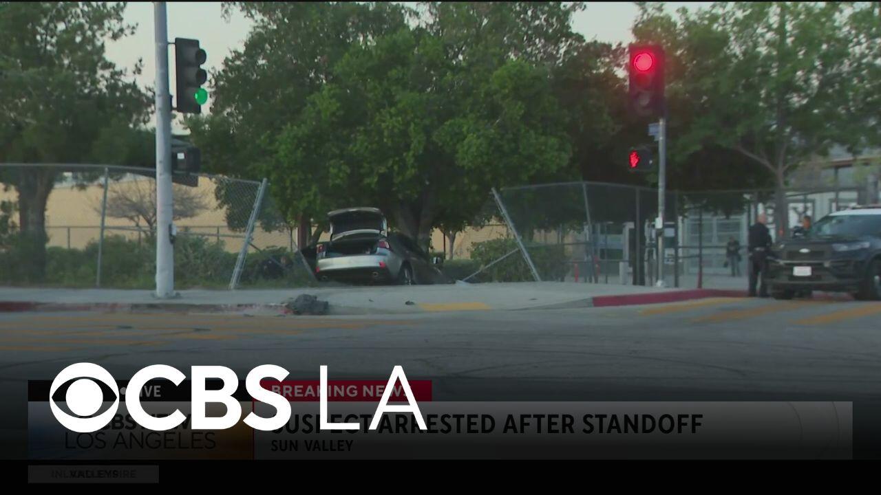 An alleged DUI suspect attempted to escape police by climbing on a Sun Valley middle school campus building's roof, but he fell and was arrested after a lengthy standoff.